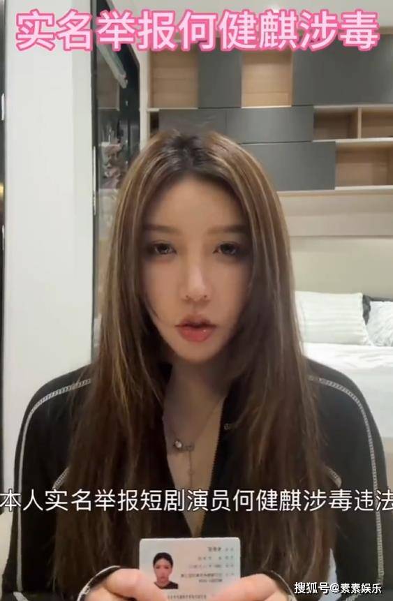 疑似何健麒的前女友手拿身份证,然后坐在镜头面前实名举报何健麒。