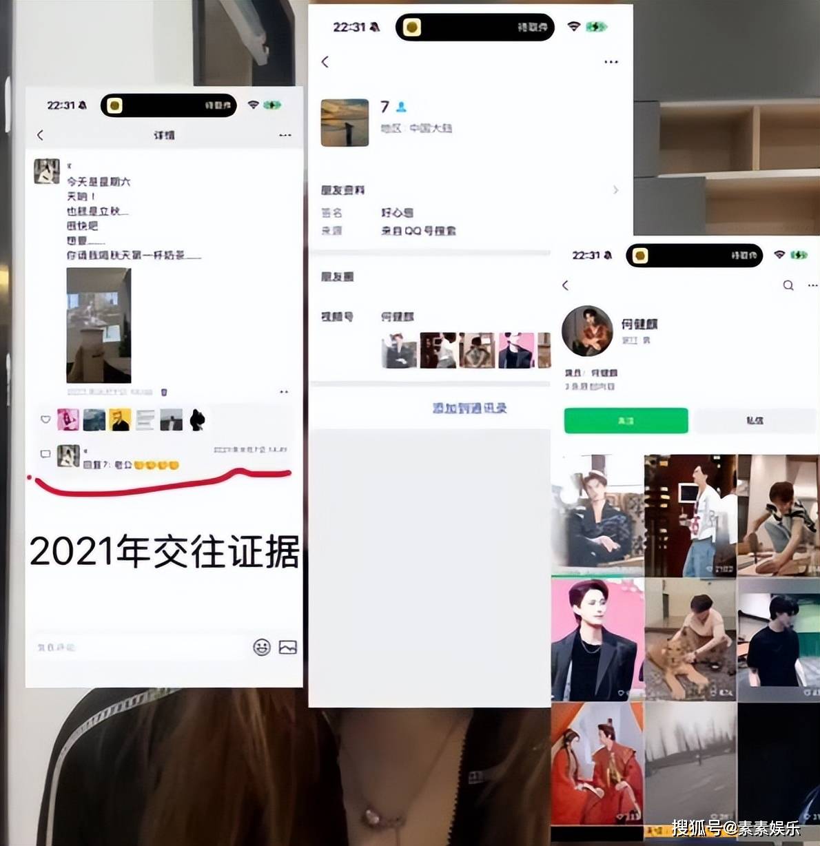 显然该女子似乎是在晒证据,还有她和何健麒一起吃饭的照片。