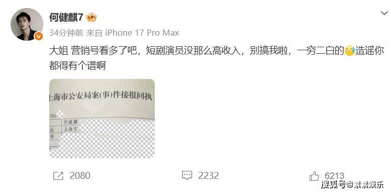 何健麒本人也出面晒报案回执!