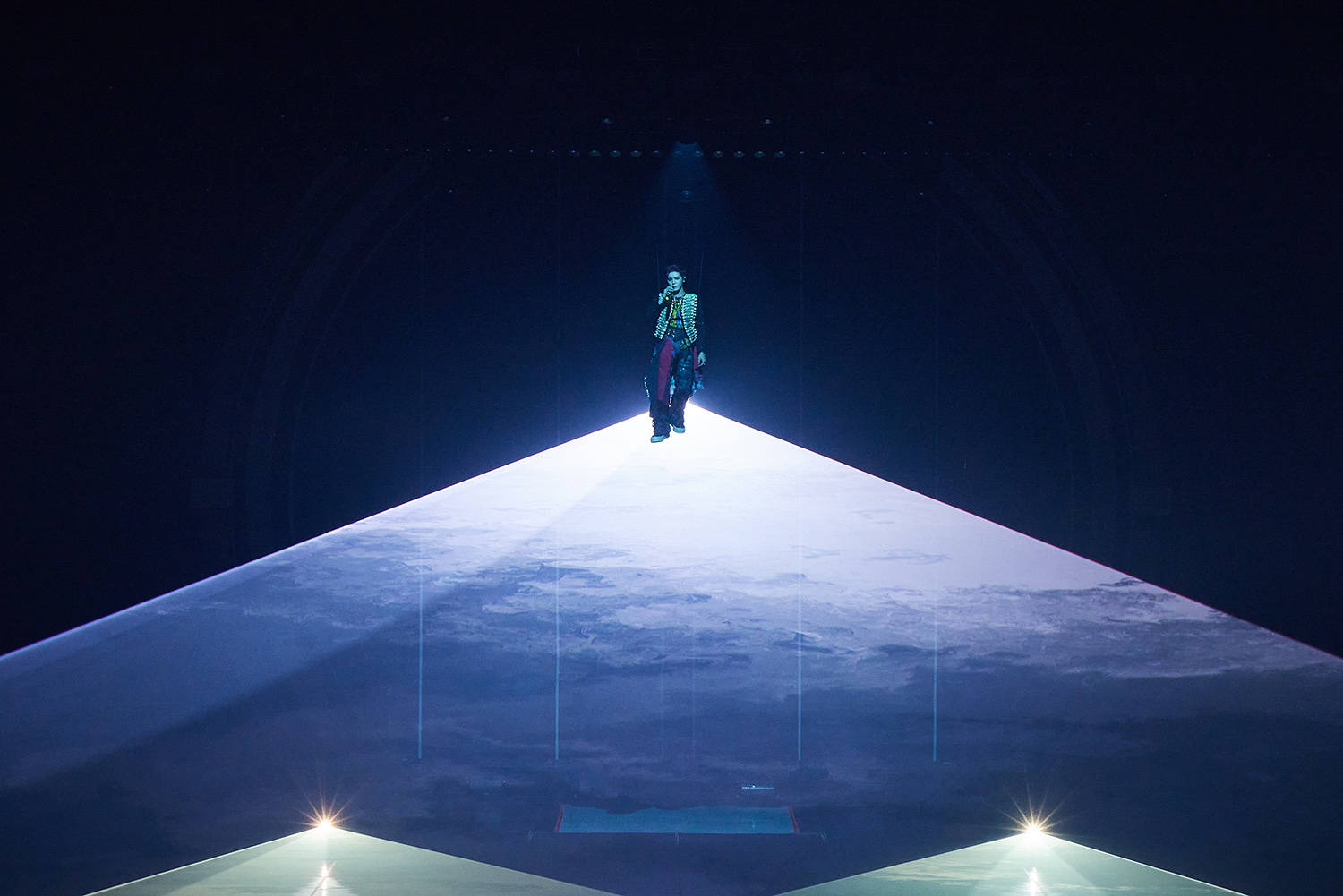 在舞台演出方面,《Ups & Downs》借助传送带装置强化了歌曲的孤独氛围,《404 File Not Found》通过钢丝与点状灯光,营造出仿佛在月光中游弋的画面,《Moon Tour》则结合潜水升降台与神秘影像,带来宛如遨游宇宙的视觉体验。泰容首次演出中曾引发热议的这些舞台设计被进一步扩展规模、立体重构,呈现出REMASTER演出所独有的差异化舞台体验,引发热烈欢呼。