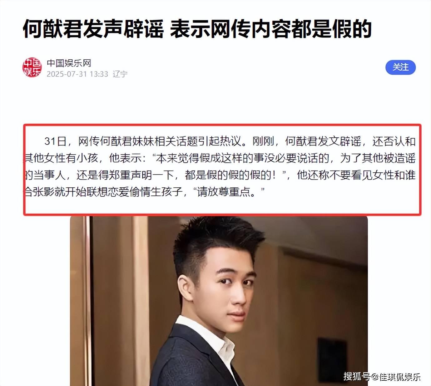 他直接发文三连“假的”,严肃表态“不要看见女性和谁合张影就开始联想恋爱偷情生孩子,请放尊重点”。