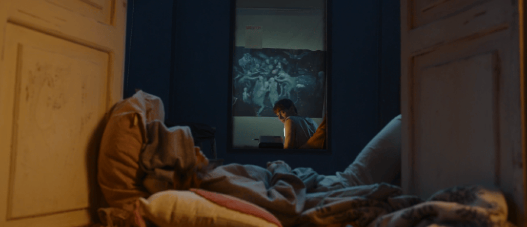 他们开始隔着镜子分享日常:一起吃饭、聊天、一起看苏联老电影、在镜子上画画留言、甚至陪伴彼此入睡……