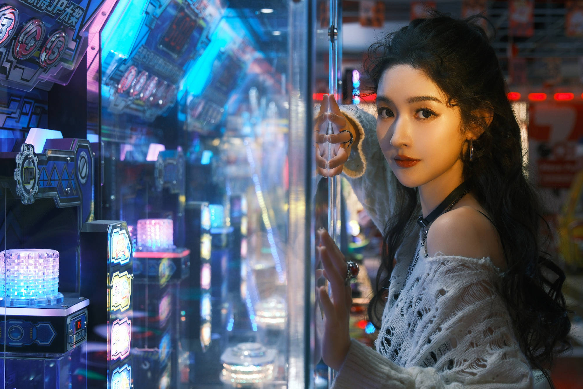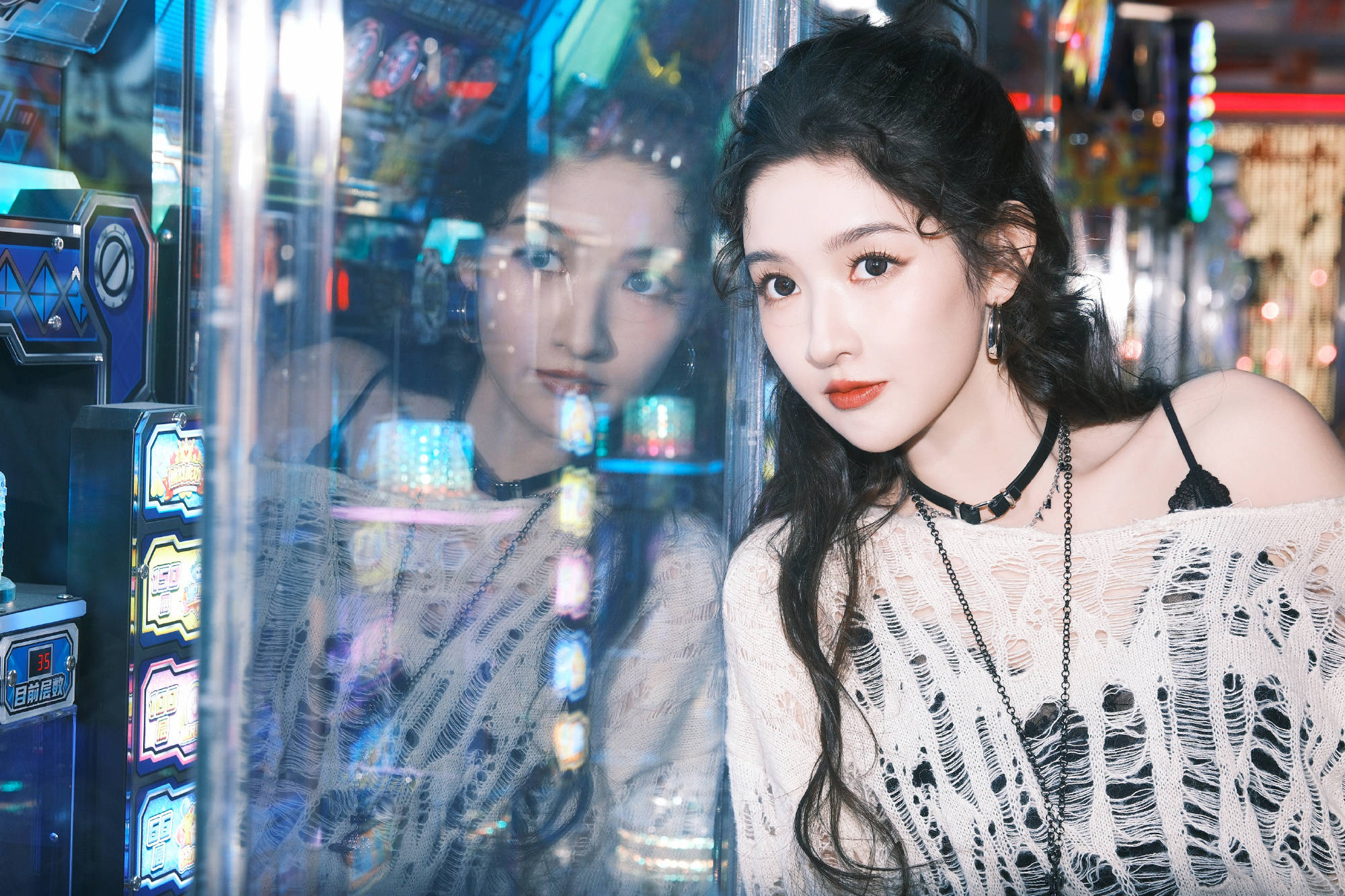 王玉雯玻璃倒影与霓虹交织,气质清冷又灵动。