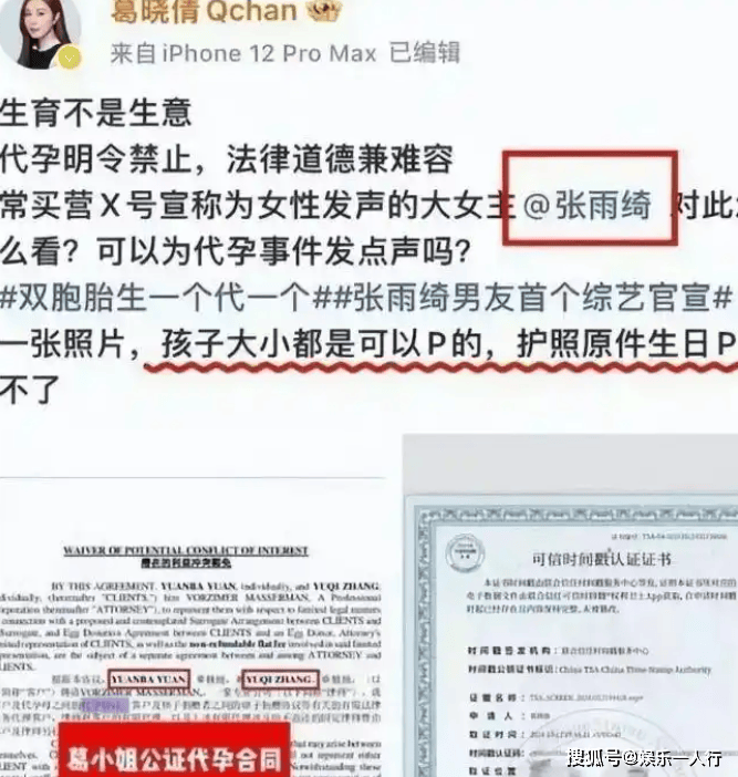 葛晓倩之前晒过一份代孕合同,虽然秒删,但网友发现合同里写着“代孕母亲和亲妈各生一个”。 有律师分析:“这操作根本不合法,但有钱能使鬼推磨啊! ”更有人爆料,张雨绮在洛杉矶某月子中心生娃,但实际只怀了一个,另一个孩子是“买来的”。