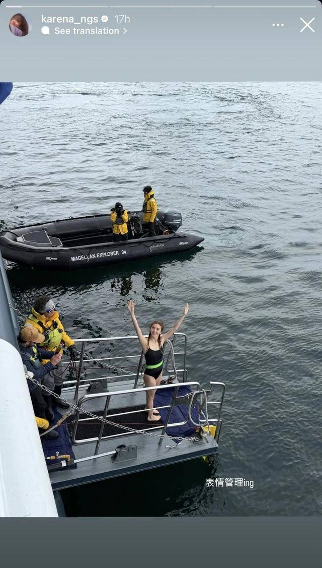 但这还不是重点,重点是吴千语在如此极端的环境下,竟然选择了解锁一项硬核成就南极跳水(Polar Plunge)。