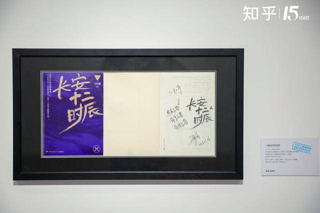 2016年,有用户在知乎上提问“如果你给《刺客信条》写剧情,会把背景设定在哪里?”,作家马伯庸以长安为背景的创作获得超1.5万赞同,这个回答演变为了后来的《长安十二时辰》,电子书也在知乎上架。此次展览上,马伯庸题赠名句的签名版《长安十二时辰》亮相。