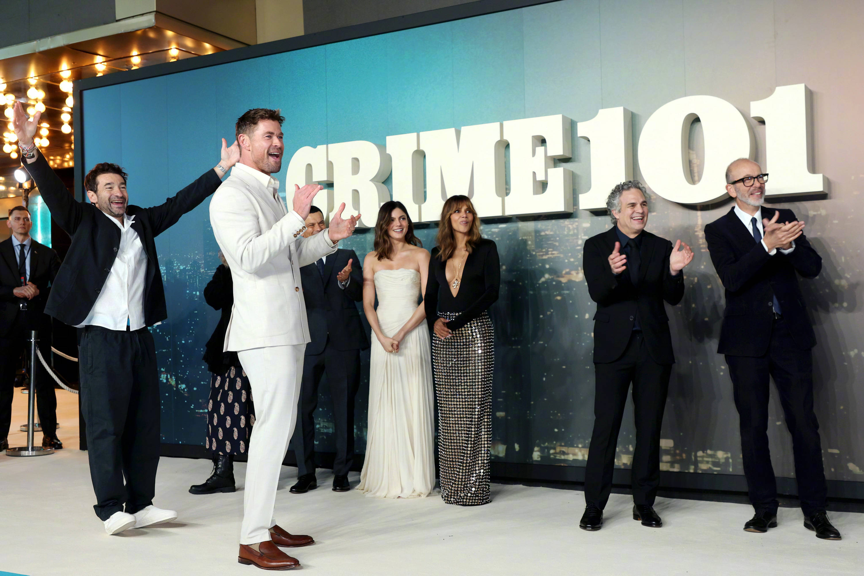 搜狐娱乐讯 《洛杉矶劫案》伦敦首映:导演巴特·雷顿,主演克里斯·海姆斯沃斯、哈莉·贝瑞、马克·鲁法洛、巴里·基奥恩、莫妮卡·巴巴罗出席。 “锤哥”一袭白色西装帅气硬朗。