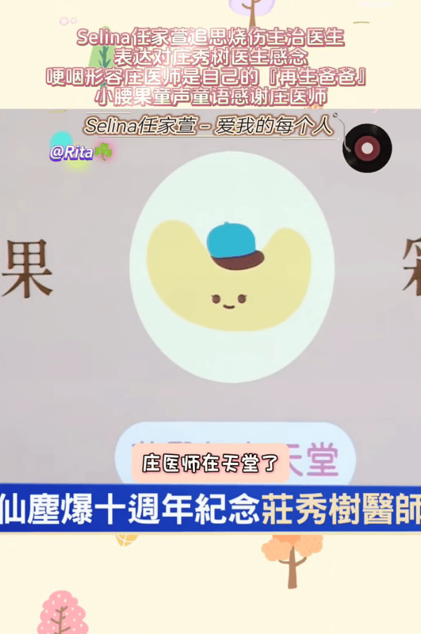 搜狐娱乐讯 近日,任家萱(Selina)录视频悼念烧伤主治医生庄秀树,再谈十年前烧伤事件,透露儿子小腰果看到她的腿,说“妈妈受伤痛痛”,她感觉被疗愈,她感谢庄医师给了她重生的机会。