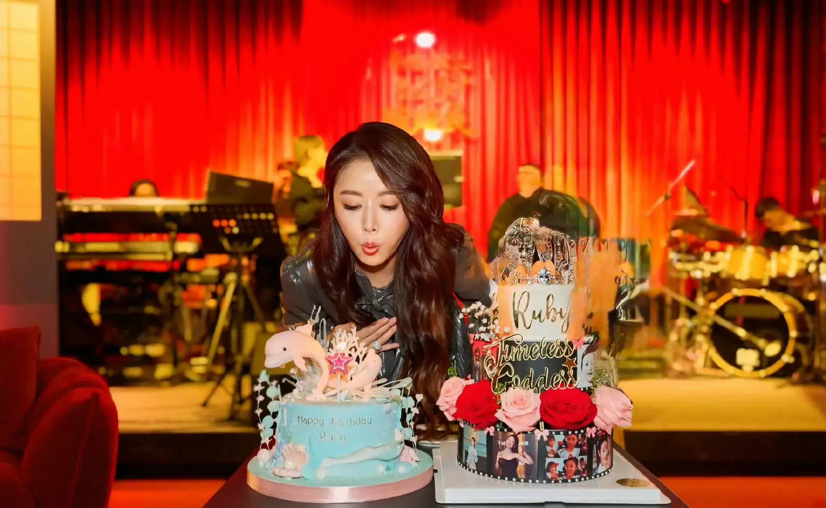 林心如吹灭蜡烛,庆生仪式感拉满。