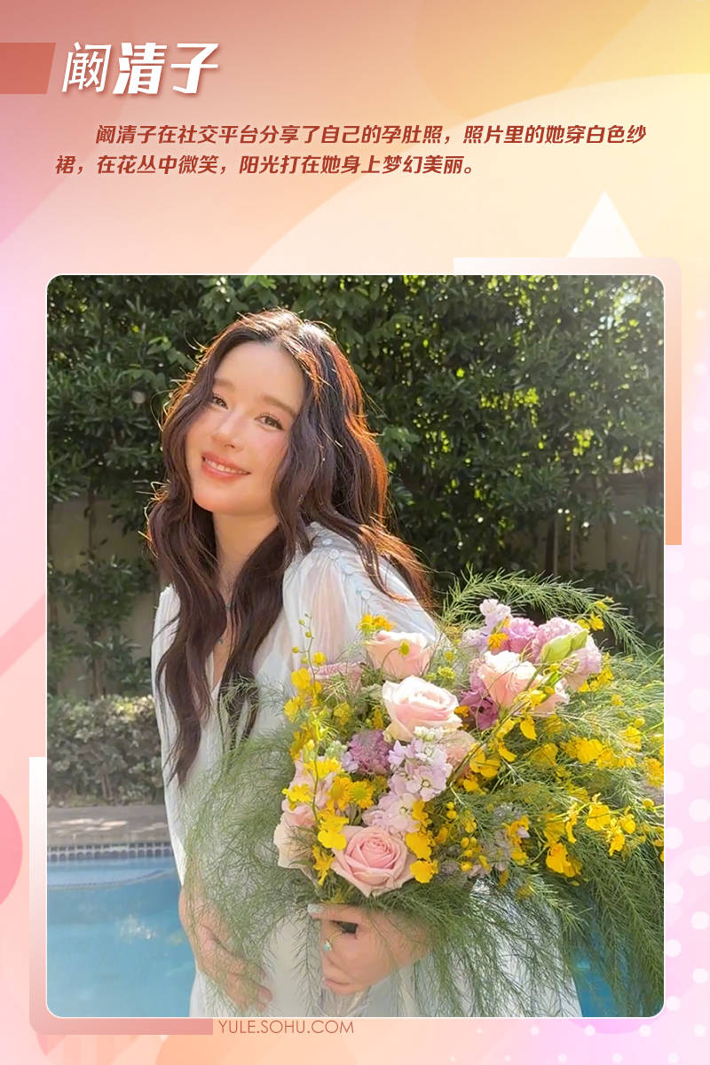 阚清子在2025年官宣怀孕喜讯时,晒出了自己的孕肚照。照片里的阚清子手捧鲜花,站在阳光下笑颜如花,她穿着白色纱裙,笑容甜美,虽然略有点发福,但幸福的样子是完全遮不住的。