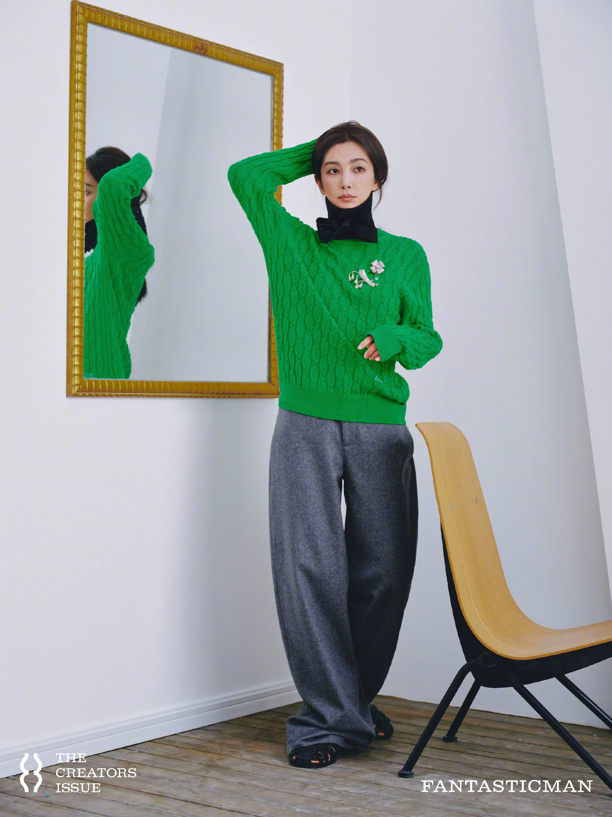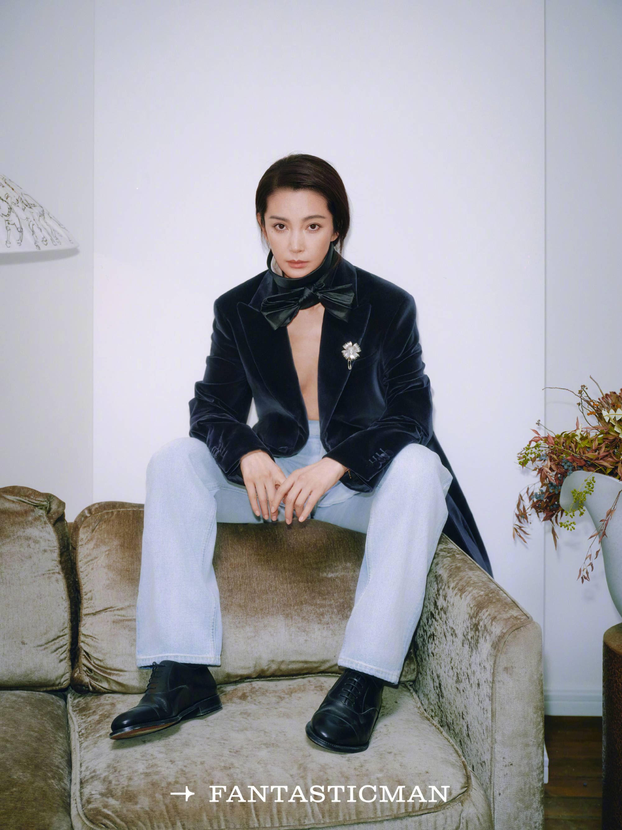 李冰冰垂眸静坐,领结点缀尽显利落质感。