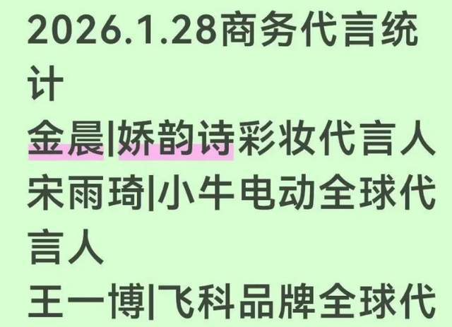 就说高奢和时尚圈,2021 年 10 月她就成了路易威登的品牌大使,合作一直没断过;2023 年 10 月又拿下设计师品牌 FUUNNY FEELLN 的品牌代言人;就在爆料前一天,也就是 2026 年 1 月 28 日,她还刚官宣成为娇韵诗彩妆代言人。