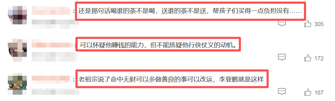 自从李亚鹏出圈后,网友们的评价也是清一色的好评,堪称大型“真香”现场。以往是全网嘲讽,如今是全网称赞。有人说“买的不是茶,是大爱”。也有人建议李亚鹏多开发一些平民价的产品或日用品,能让这份爱心走得更加长远。毕竟情怀能引流,品质和性价比才能真正留住客人。