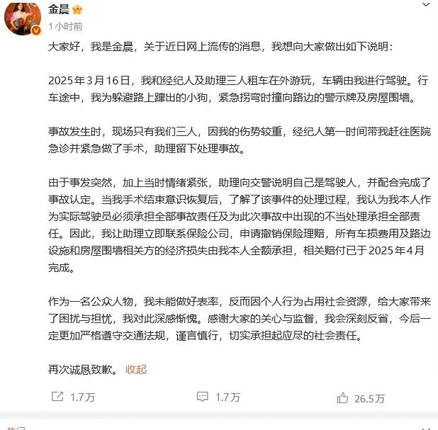 同期艺人金晨因交通纠纷事件迅速发布致歉声明,获舆论谅解,而张雨绮对多起争议(含本次接待事件)的沉默策略,被批“用资本压制知情权”,加速公众信任危机。