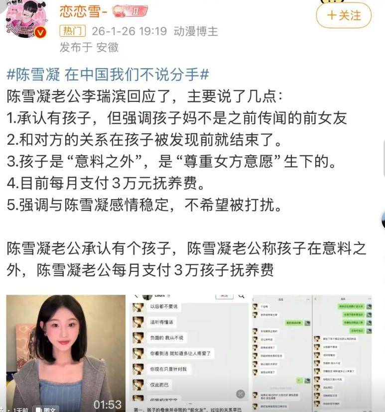 而作为当事人的陈雪凝,自始至终都没有出面回应过一句,既没有为老公辩解,也没有表达自己的委屈。