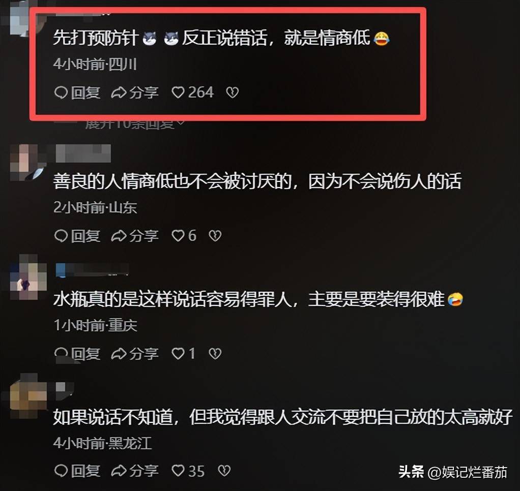 网友吐槽道:“先打预防针,反正说错话,就用情商低来兜底。”
