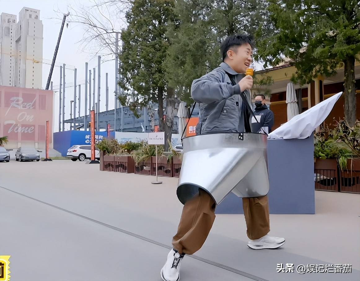 徐志胜不仅要把控水杯里面的水,不能流出来,脚下还要注意不要踩到布,整个过程很窘迫。