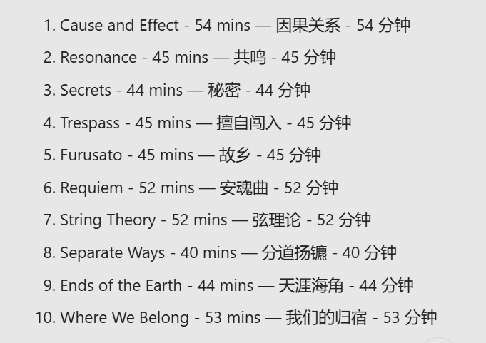 另外剧集每一集的标题和时长也都已经曝光。