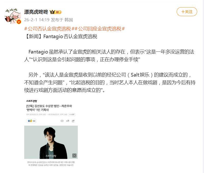 消息一出,其所属经纪公司Fantagio的反应堪称“光速”。公司立刻跳出来否认所有指控,强调这个法人公司“已停运超过一年,正在注销过程中”,并解释称,这是金宣虎的前经纪公司(Salt娱乐)当初为了支持他的话剧活动而建议设立的,绝无避税意图。然而,这番澄清在已经点燃的舆论火药桶面前,显得有些苍白。