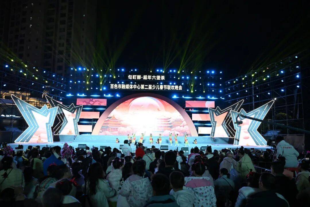 1月31日晚,百色爱琴海购物公园广场华灯璀璨,成为一片欢乐的海洋。百色市融媒体中心第二届少儿春节联欢晚会启幕。本场晚会是彼得潘艺术学苑专场晚会的第一场。舞台上,数百名小演员联袂奉献了26个精彩节目,以纯真的童心、精湛的才艺,为市民呈现了一场融合中华传统文化底蕴与童真创意的艺术盛宴。