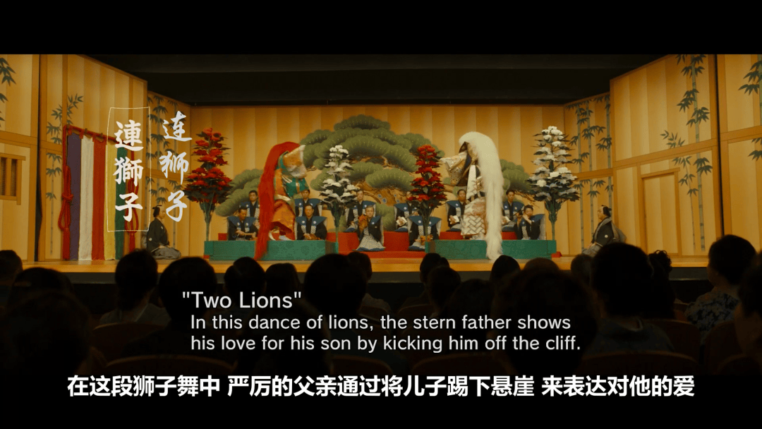 这部长达三个小时的影片气势恢宏地讲述着出身黑道的歌舞伎学徒菊雄,在追求成为“国宝”的路上的起起落落。