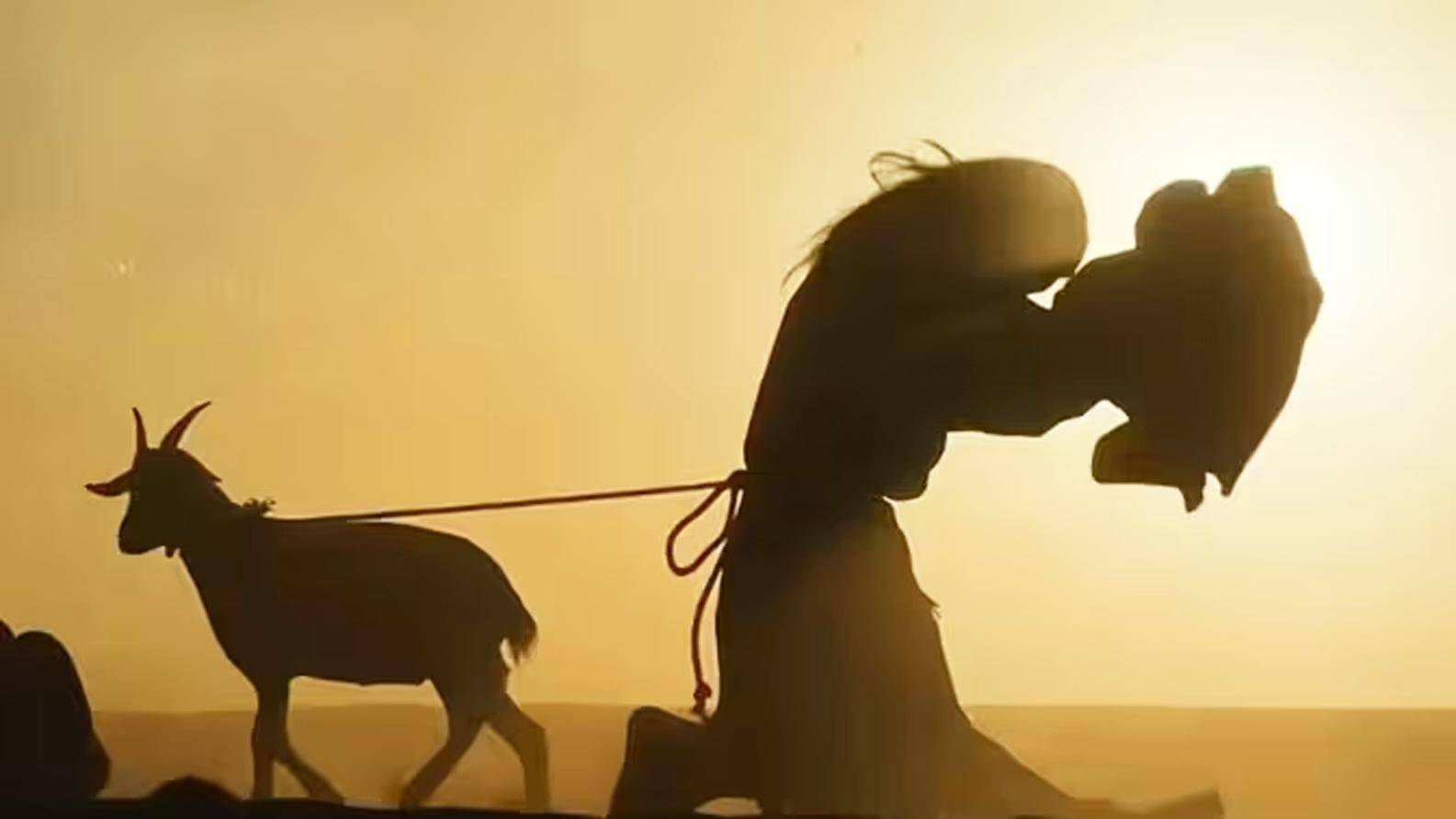 当契丹王耶律德光脱下外袍,掷于马下时,石重贵迅速伏地爬行,身旁的小羊也被拖动向前,场面极尽羞辱。
