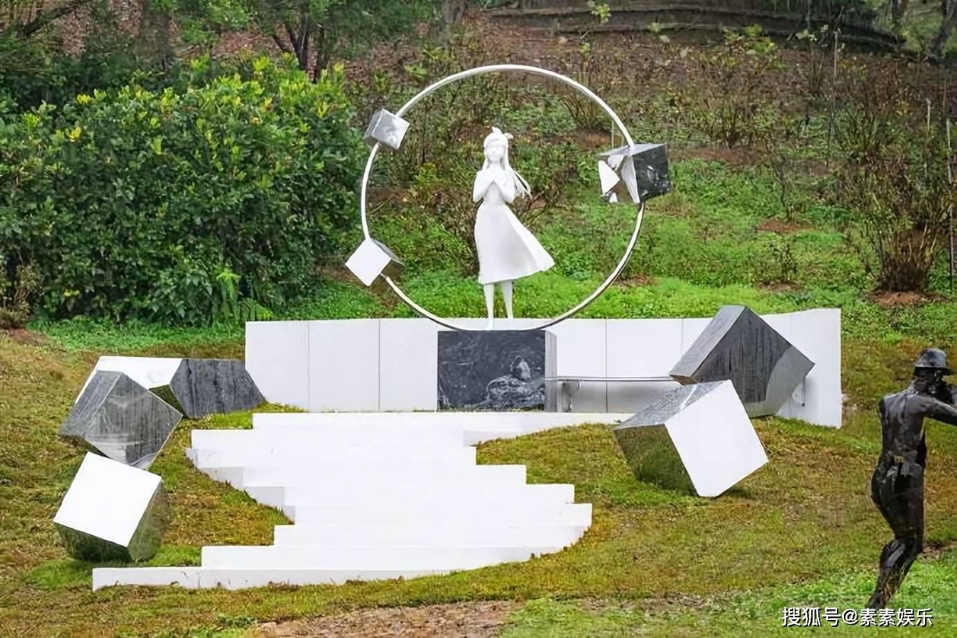 同时,整个雕像是采用了九个立方体进行摆放布局,而9代表着天空上的行星,星星围绕着熙媛的雕像,所以被称为《熙媛的永恒轨道》。