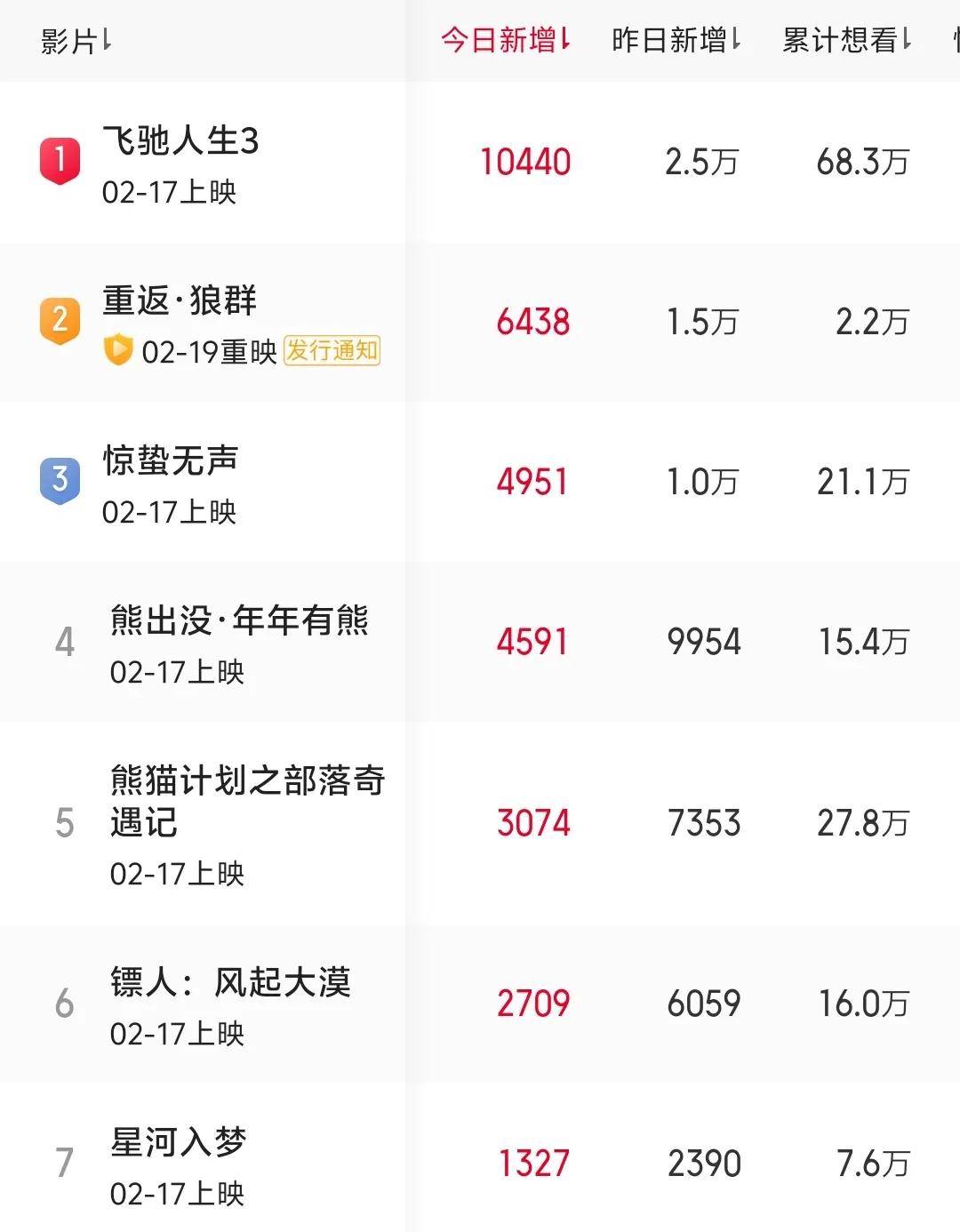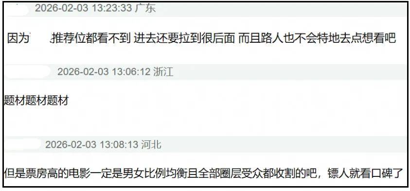 与此同时,网友还发现《镖人》新增热度排在了七部春节档电影中的倒数,只比《星河入梦》高,甚至没拿到购票平台推荐位。