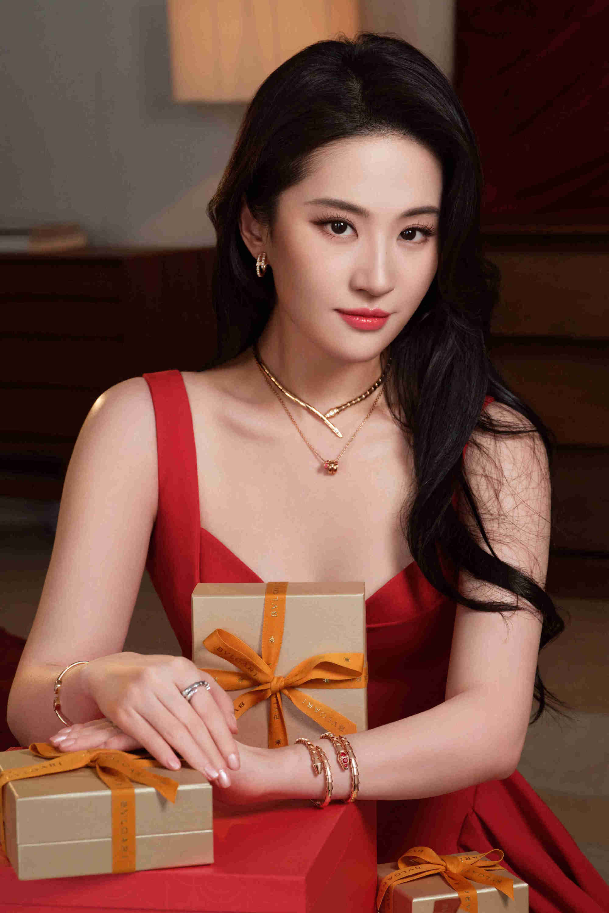 刘亦菲一袭红裙美艳性感。