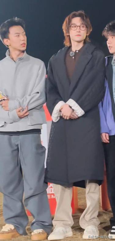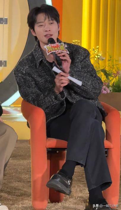 魏大勋穿着一件亮片的上衣,黑色西装裤,一身穿搭和平常没什么区别。