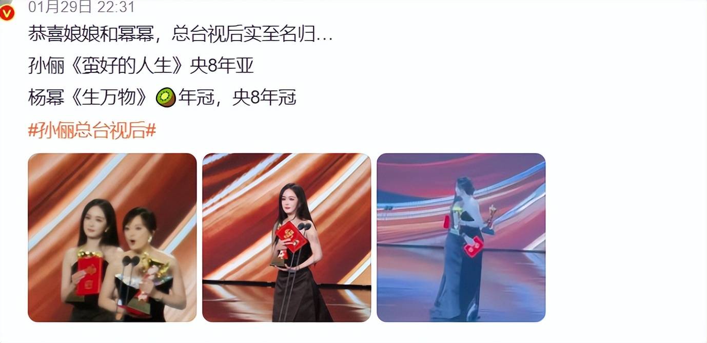 可她同年龄段的对手杨幂发展得也比她好,最近还拿下了央视总台的年度女演员。