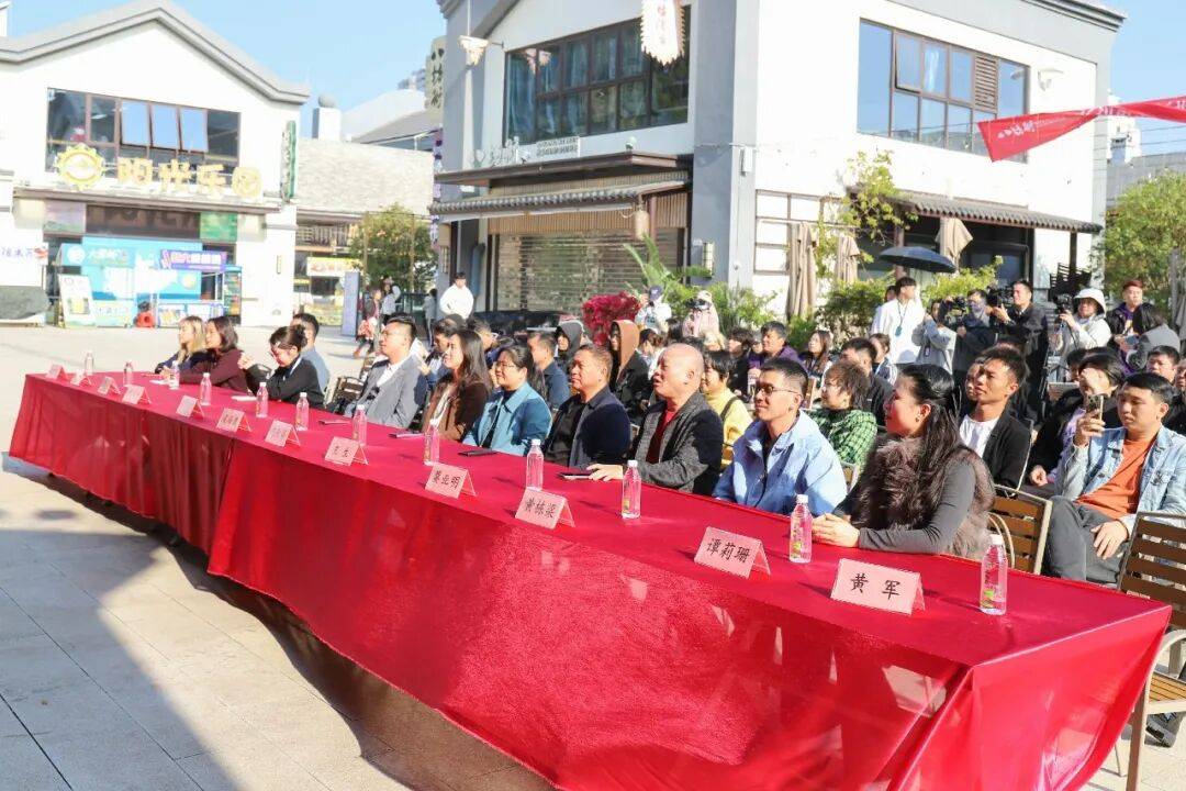 随后,在全场嘉宾的共同见证下,与会领导与主创团队共同完成揭红布开机仪式。全体人员还合影留念,定格下这一重要时刻。