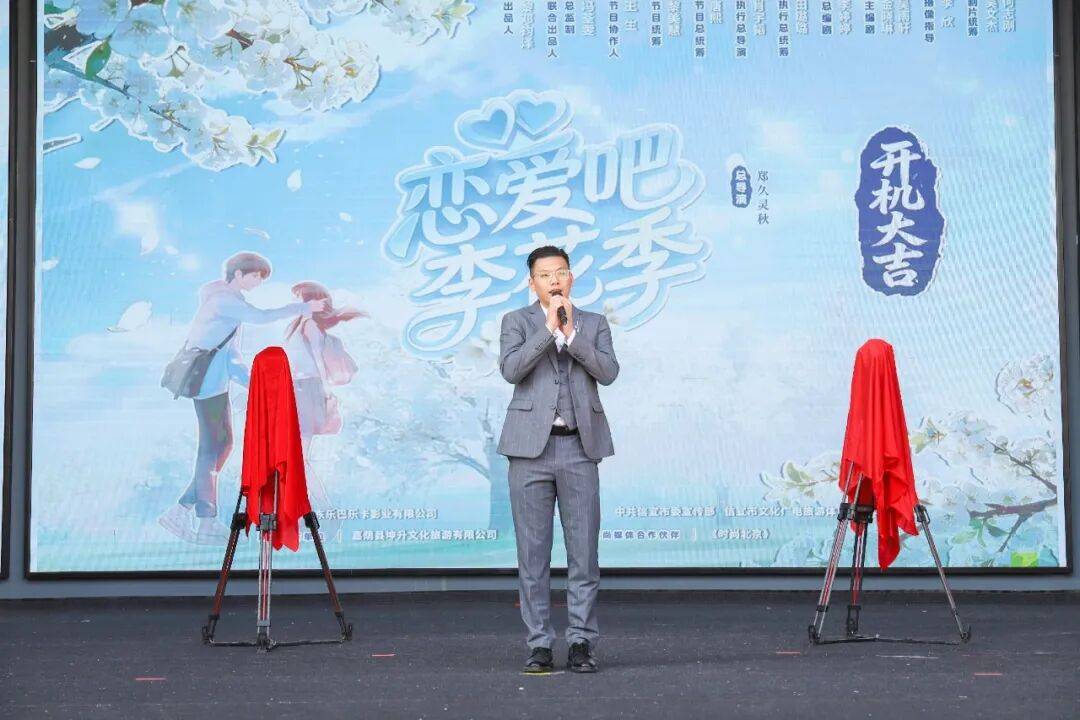 仪式现场,李花主题装置与清新浪漫的青春氛围相得映彰。出品方代表、广东乐巴乐卡影业有限公司董事长黎邓钧泽首先分享了节目以“青春恋旅+信宜文旅”为核心的创作初心。随后,节目导演郑久灵秋介绍,这档微综艺将以信宜盛放的李花为浪漫底色,聚焦本土青年的社交与情感故事,在自然风光与人文场景的交织中,打造兼具治愈感与传播力的内容。