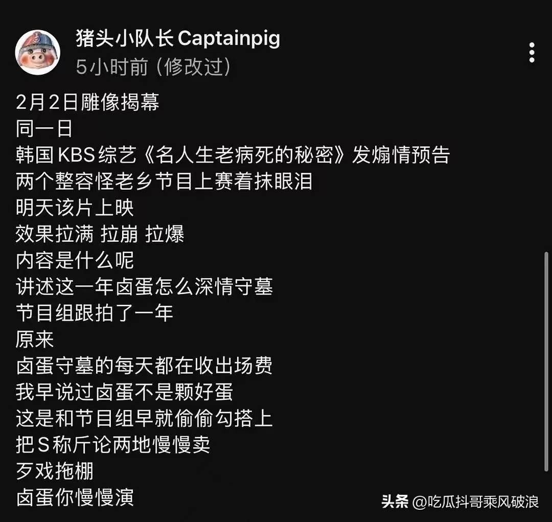 大S去世前20小时的行程被带上了韩综节目,而那档《名人生老病死的秘密》节目更是将大S不住医院的决定归结为她自己的选择,具俊晔和大S的家人只能尊重她的决定。这些本应永远保留的私人决定,竟成了节目中公开谈论的素材,这种行为,哪里看得出具俊晔对大S的真正尊重?