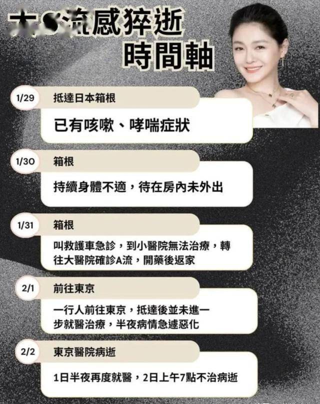2月1日凌晨,大S昏迷,被送到医院时,已经有“白肺”状态,还引发了全身性败血症,情况十分危急。