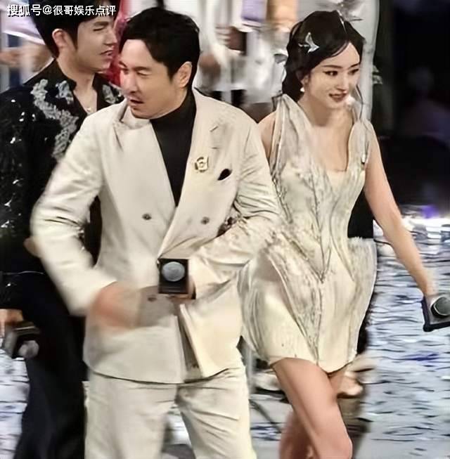 现场镜头捕捉到了这场互动的每一个细节:沈腾眉头微皱,眼神紧紧锁定台阶,嘴里不停念叨“慢点慢点”,紧张又认真的模样与他平日的喜剧人形象形成强烈反差;杨幂则被这突如其来的“硬核守护”整懵,嘴角忍不住上扬,全程憋笑配合,扶着沈腾的手臂稳步走下台阶,两人的互动让现场嘉宾笑作一团