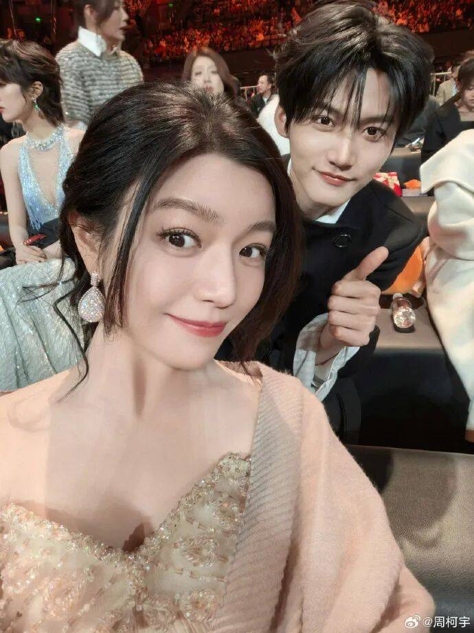 微博之夜,姐姐陈妍希和弟弟周柯宇上台表演。