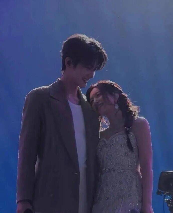 舞台灯光一暗下来,俩人就贴一块了: