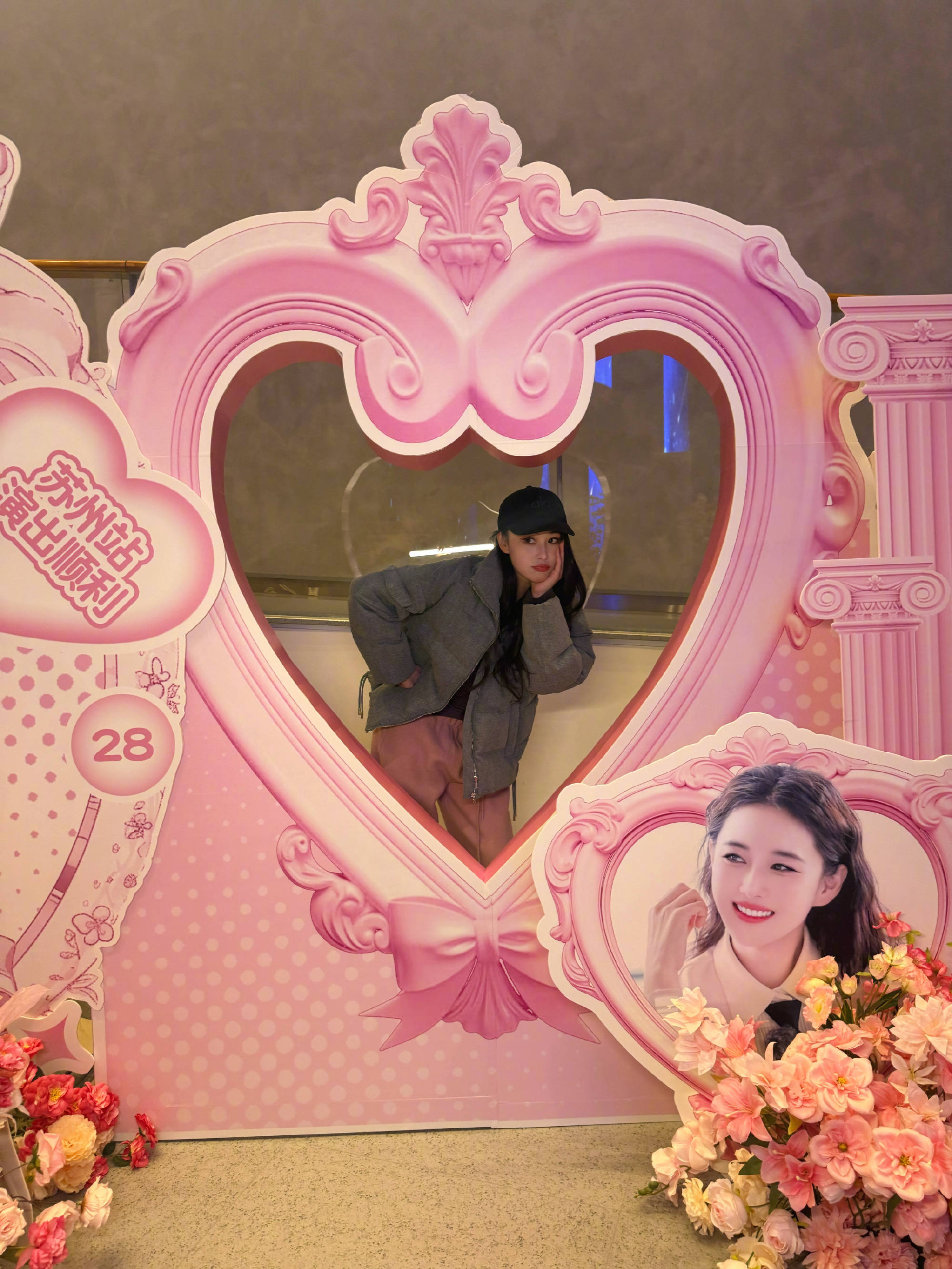 张馨予打卡应援板,俏皮造型活力十足。