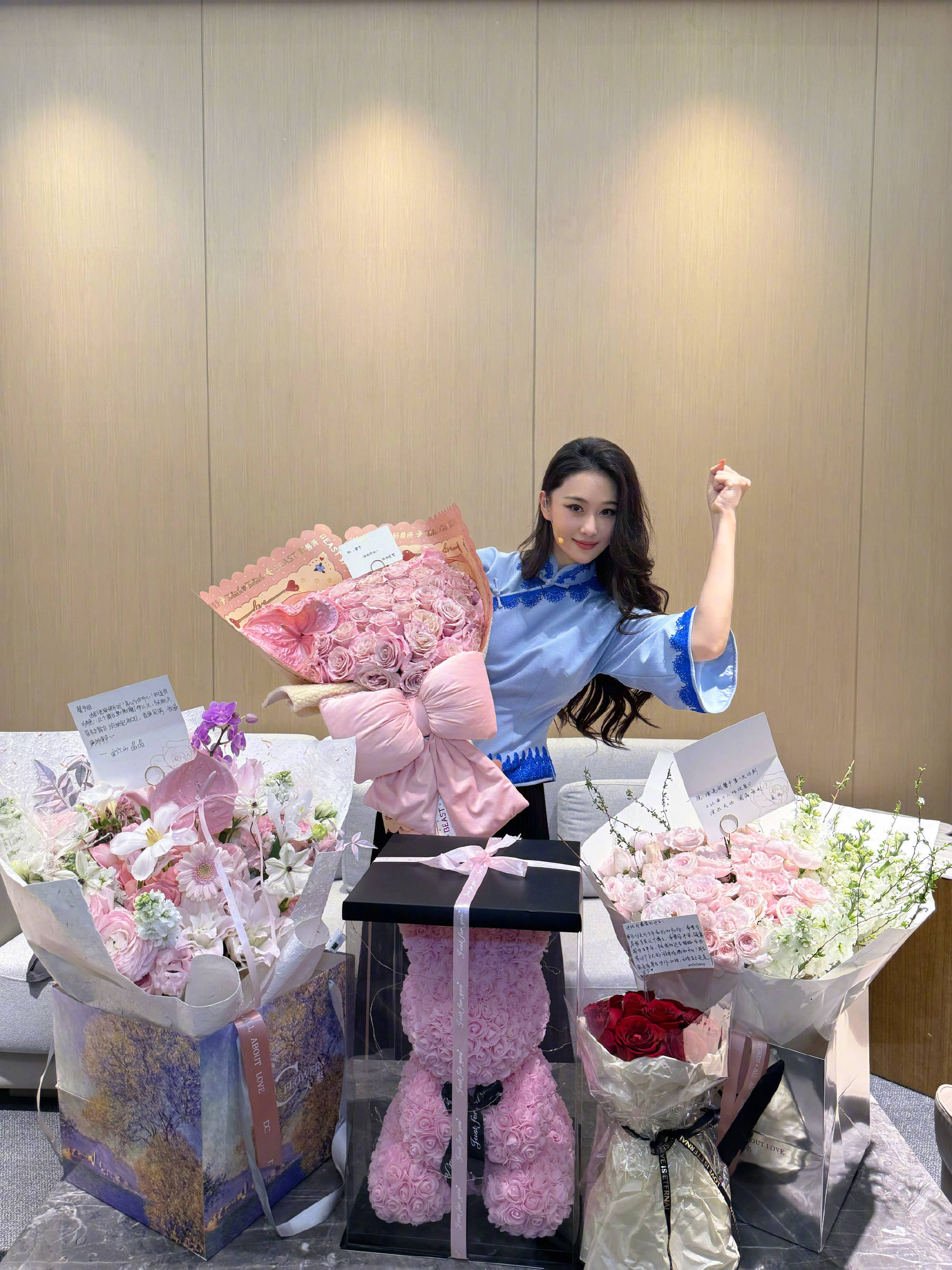 张馨予晒家人朋友们的赠花,祝福满满。