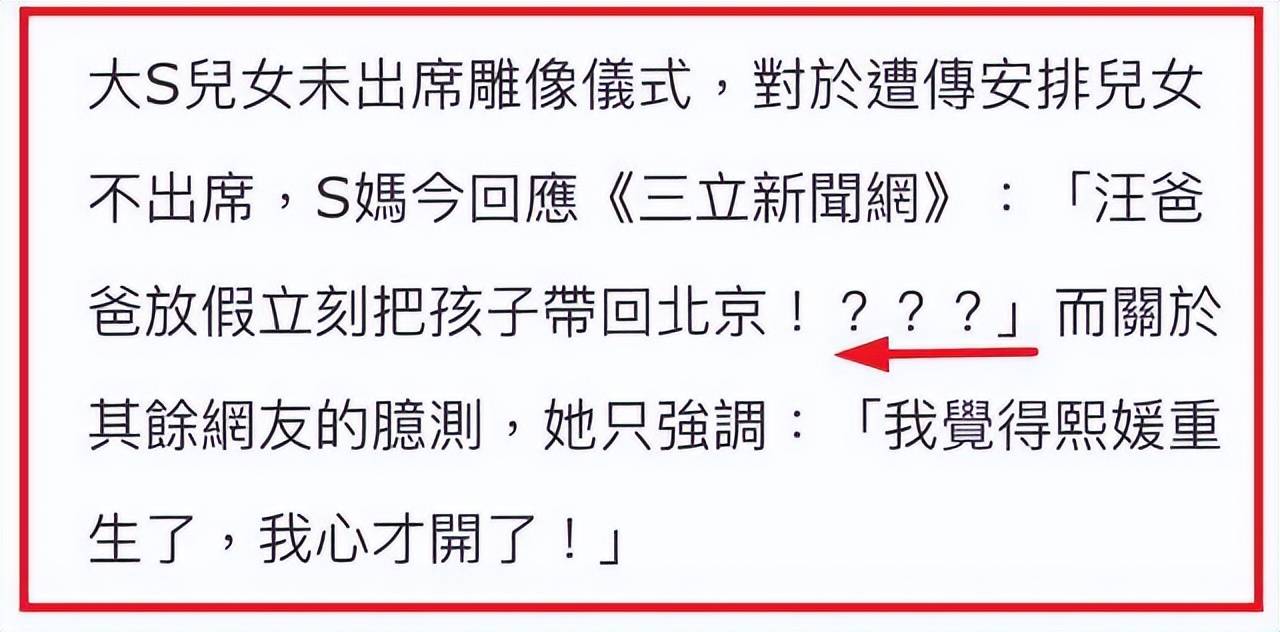 S妈随即回应,称孩子被汪小菲带离台北,未能参加。