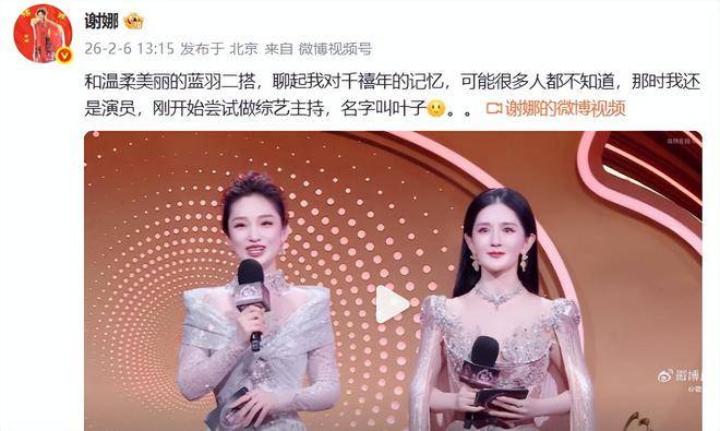 时隔49天,谢娜再次与蓝羽同台主持一场大型晚会,这一消息引起了不少关注。2026年2月6日下午13:15,谢娜在个人社交平台发布了一条动态,透露与蓝羽的合作回忆,并分享了她对千禧年时期的独特感怀。她写道:和温柔美丽的蓝羽再次搭档,聊起了我对千禧年那些年岁月的记忆。可能很多人不知道,那时的我还是一名演员,刚刚开始尝试做综艺主持,艺名叫叶子。这一段话,带着几分怀旧与温情,让人不禁感慨时光流转,昔日的初心与今天的辉煌似乎只有她自己最能体会。