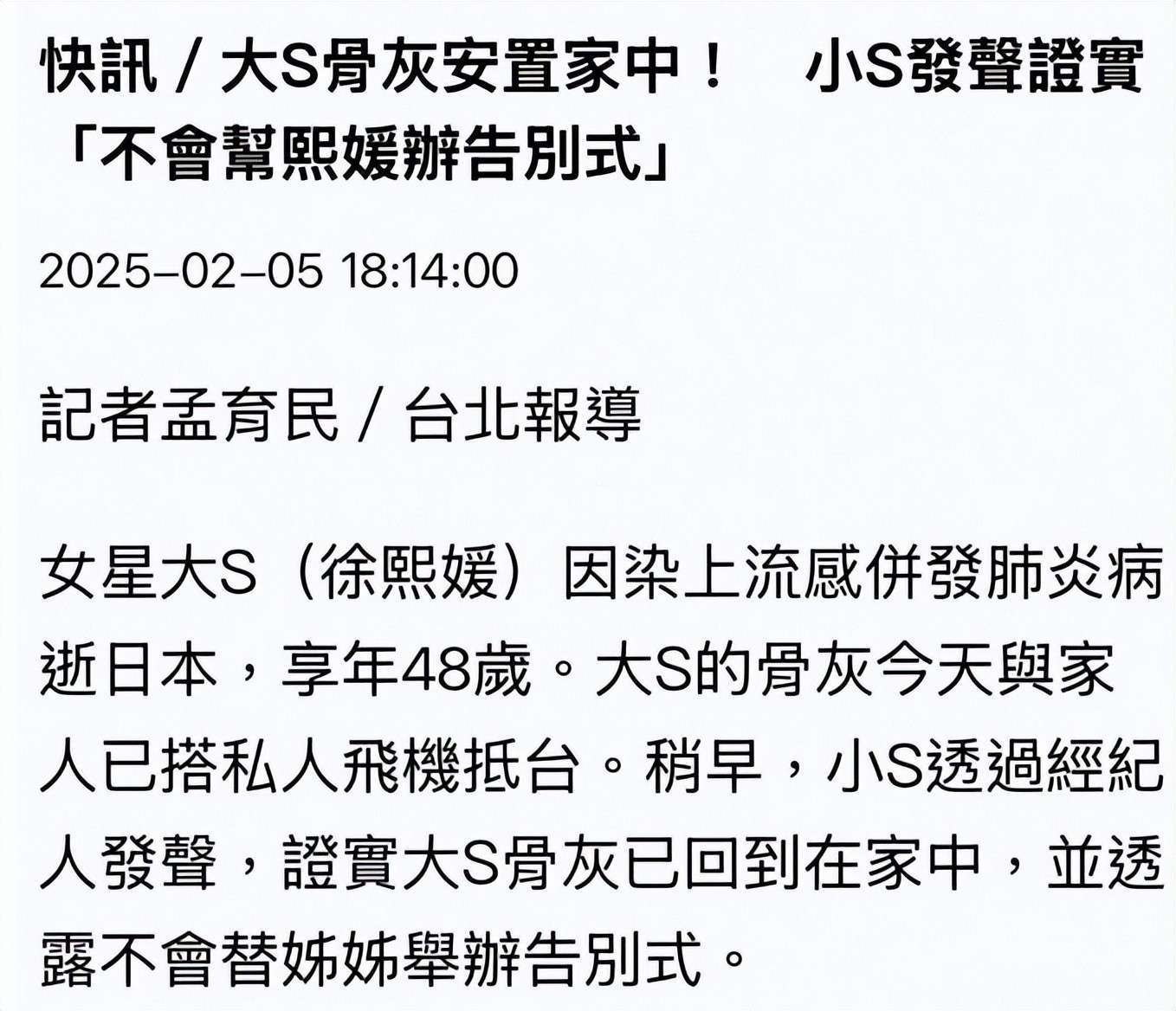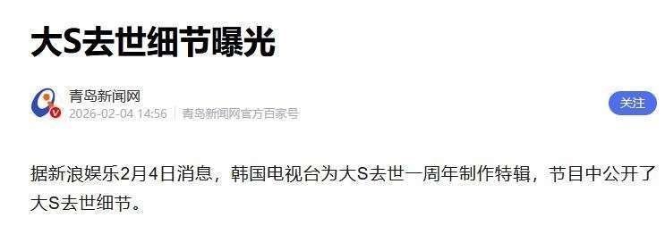 2月3日,韩国综艺《生老病死的秘密》揭示,大S感染流感时,她的体能已经远低于同龄人水平。特别是她长期存在的先天性心脏病,这正是她当年分娩时心脏骤停的根本原因。