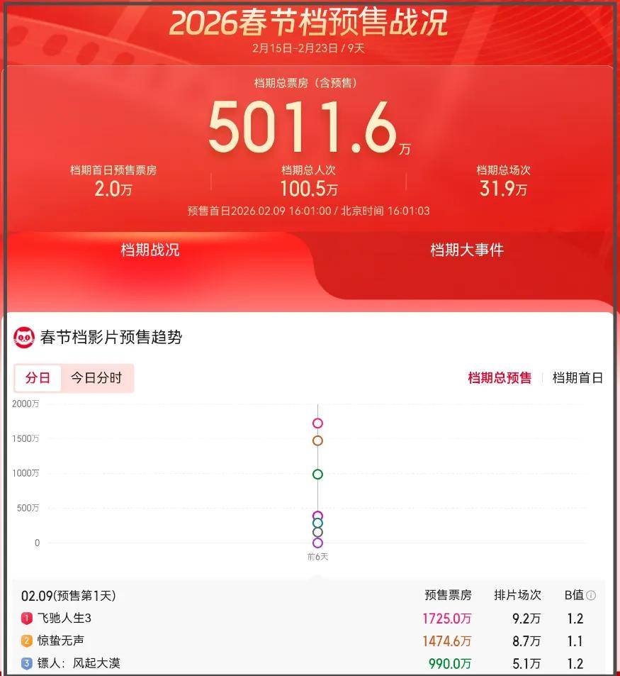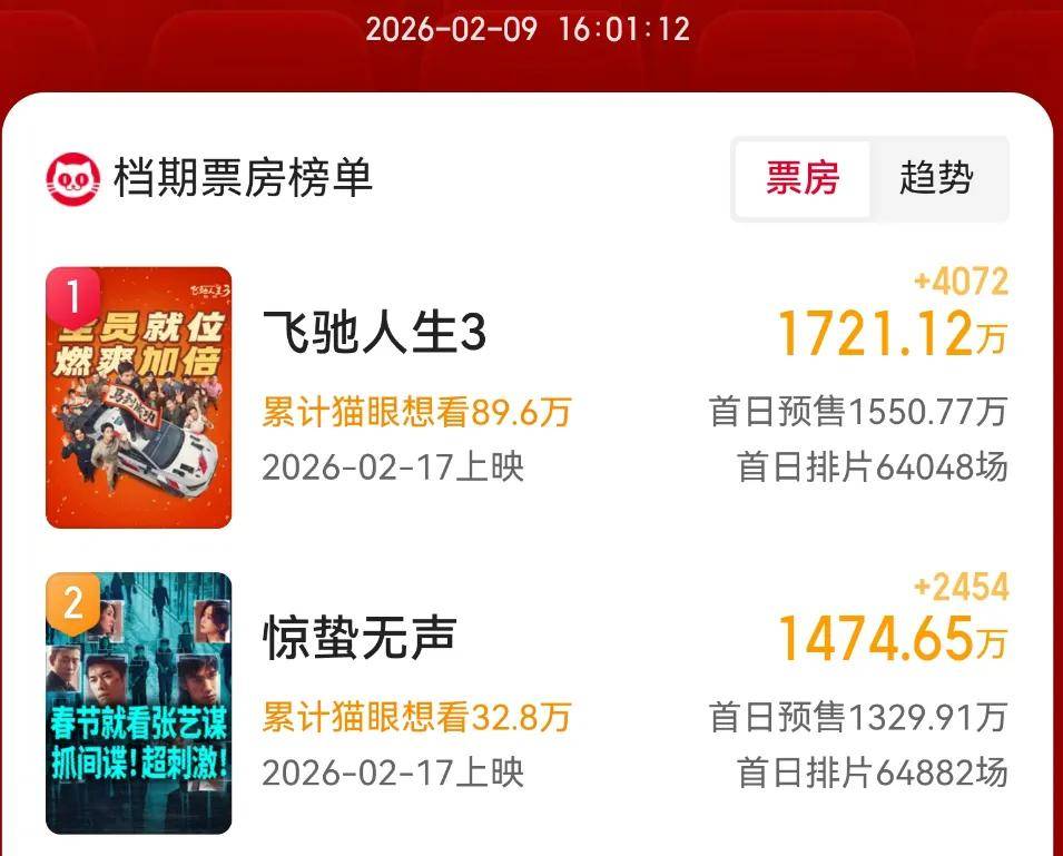 ——要不说春节档电影大战都是一环扣一环呢,就目前预售票房走势看,《飞驰人生3》有望拿下两个第一。