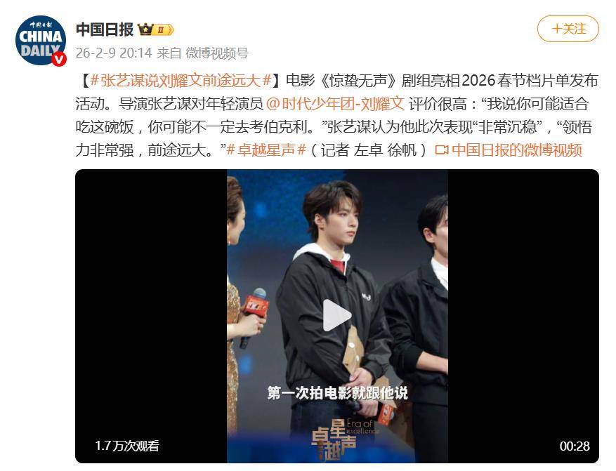 据2月9日报道,2026年春节档电影大战硝烟初起,导演张艺谋一句“你可能适合吃这碗饭,不一定去考伯克利”,直接让合作演员、时代少年团成员刘耀文的职业前景成了热议焦点。这听似随口的建议,背后是对一位新生代演员天赋与实绩的犀利盖章。