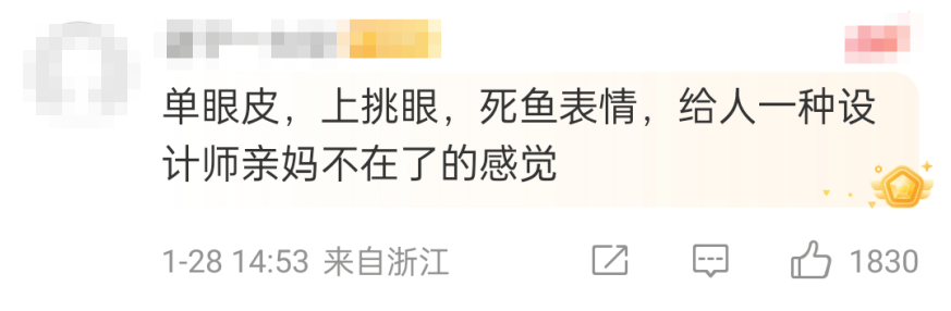 网单眼皮,上挑眼,死鱼表情,给人一种设计师亲妈不在了的感受。