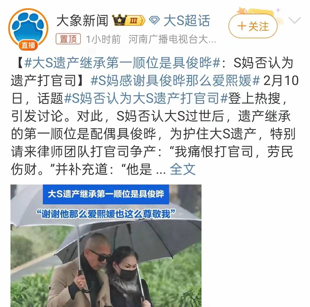 S妈否认和具俊晔争遗产,小S全家守护姐夫,网友:利益牵扯太深了