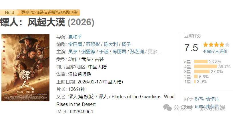 随着口碑的发酵,越来越多的观众开始为《镖人》发声。“欠吴京一张电影票”“袁和平之后,再无真武侠”的话题,正在社交平台持续发酵。对于喜欢硬核动作、向往江湖情怀的观众来说,《镖人》绝对是今年春节档的“必看之作”。