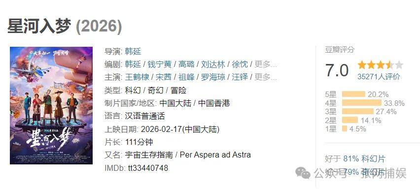 而最让人揪心的,是那部排片不足5%、豆瓣7.0分但友邻评分高达7.7分的《星河入梦》。它像一颗被灰尘掩盖的钻石,在票房榜单的角落,悄悄上演着今年春节档最动人的逆袭预演。