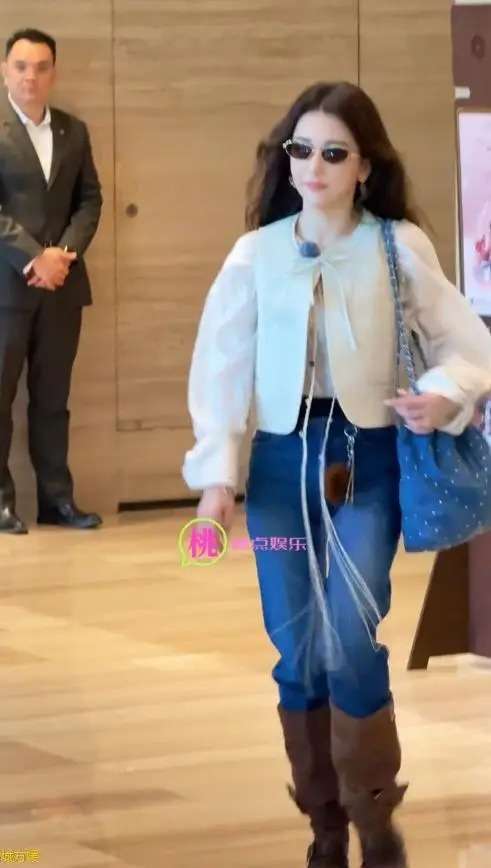 这次方媛穿了一件宽大袖口的白色外套,下身搭配普通的牛仔裤,脚踏一双棕色长筒靴。她的卷发随意披散,背上一个普通的帆布包,整体造型看起来非常随意,甚至有些潦草。虽然方媛的身高本不算矮,但这套穿搭完全没有凸显她的身材优势,反而显得她既矮又略显臃肿,与她平时的时尚形象相差甚远。